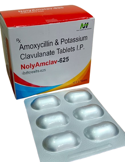 Popular products include NolyCef-200 LB (antibiotic with probiotics), NolyAmclav-625 (antibiotic combination), NolyAce-SP (pain and inflammation relief), NolyDome-R and NolyDome-P (gastro medicines), and NolyZyme-D (digestive enzyme syrup).